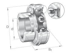 INA 外球面球轴承 RAE..-NPP-NR, 圆柱外圈,偏心锁圈定位, 外圈带槽,两侧 P 型密封
