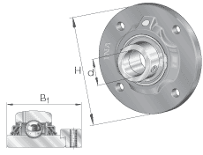 INA 四螺栓法兰轴承座单元 TFE, 带有定心凸出物的铸铁轴承座,带有偏心叉瓦前棱的径向支撑球轴承